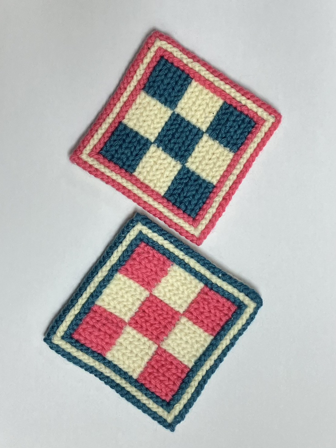 「ポルトガル刺繍のコースター」 今回は基本のステッチを使って2点のコースターを作ります 講師 : 山本 真理子 出来上がりサイズ : 9.5cmx9.5cm 持ち物 : 糸きりバサミ お支払い方法 : お振込み(ゆうちょ銀行)