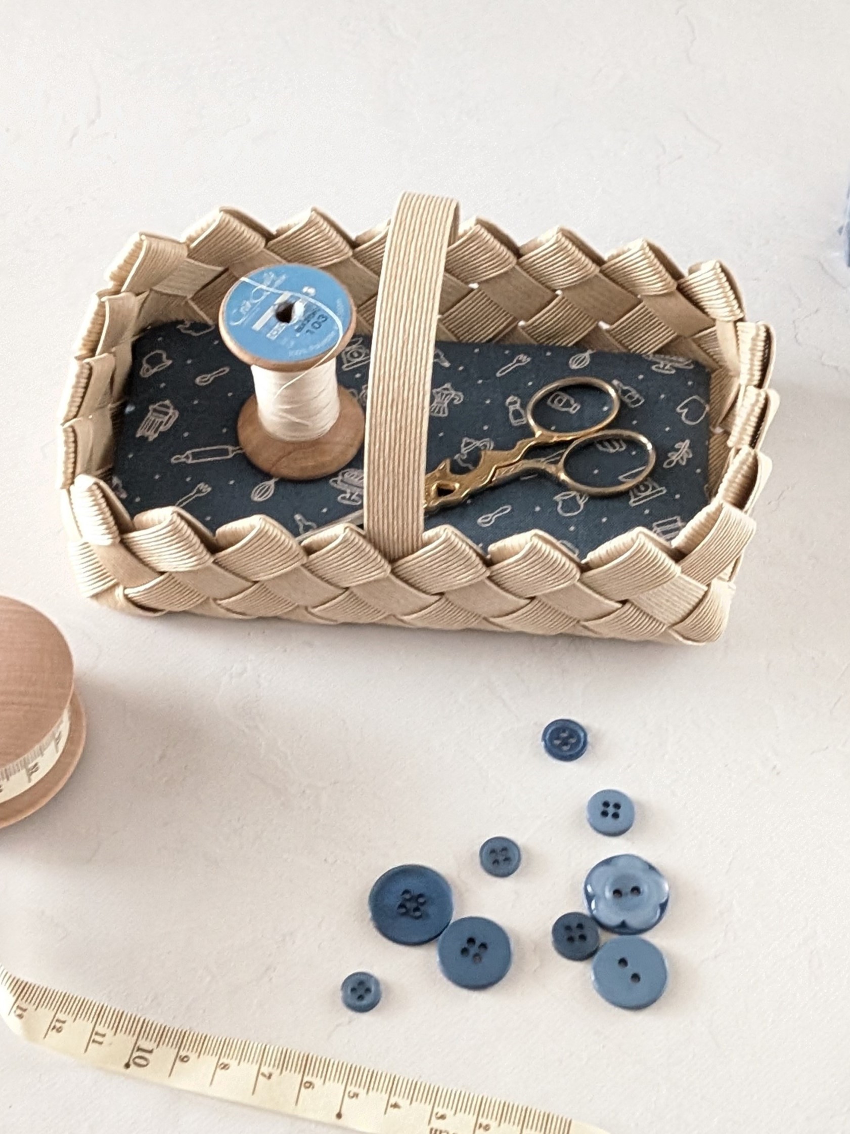 「若山先生の新柄布で作るワンハンドルトレイ」 若山先生のかわいい布を使ったマットと紙バンドでトレイを編みます 講師 : 古木 明美 出来上がりサイズ : 18cm×11cm 高さ5cm 持ち物 : 特にございません お支払い方法 : お振込み(ゆうちょ銀行)